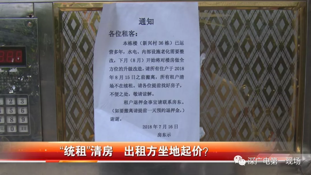 在趙先生家附近,記者找到了這個名為新興村的城中村,在其中一棟樓房的入口處貼著一張告示,上面寫道,由于房屋水電設施老化,所以需要整改,8月15日之前所有住戶都得搬離,所有租戶都不再續(xù)租,落款寫的是房東。