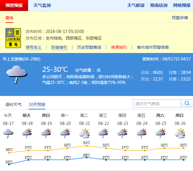 深圳新聞網(wǎng)訊(記者 施冰冰)深圳市氣象臺預(yù)計,17日深圳多云間陰天,有陣雨,部分時間雨勢較大,氣溫26-30℃;18-19日多云,間中有陣雨或雷陣雨;20日起陽光增多,偶有短時陣雨,天氣趨于炎熱。