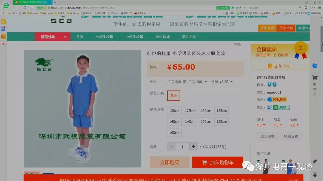 福田家長蔡先生的孩子今年上小學一年級,幾天前,蔡先生為孩子購買了一套夏季運動服,孩子試穿合身之后,上周六,他再次前往校服店,準備再買一套,卻發(fā)現(xiàn)同樣一套校服,價格已經(jīng)是今非昔比。8月15號買的是53元,現(xiàn)在漲到了65元。