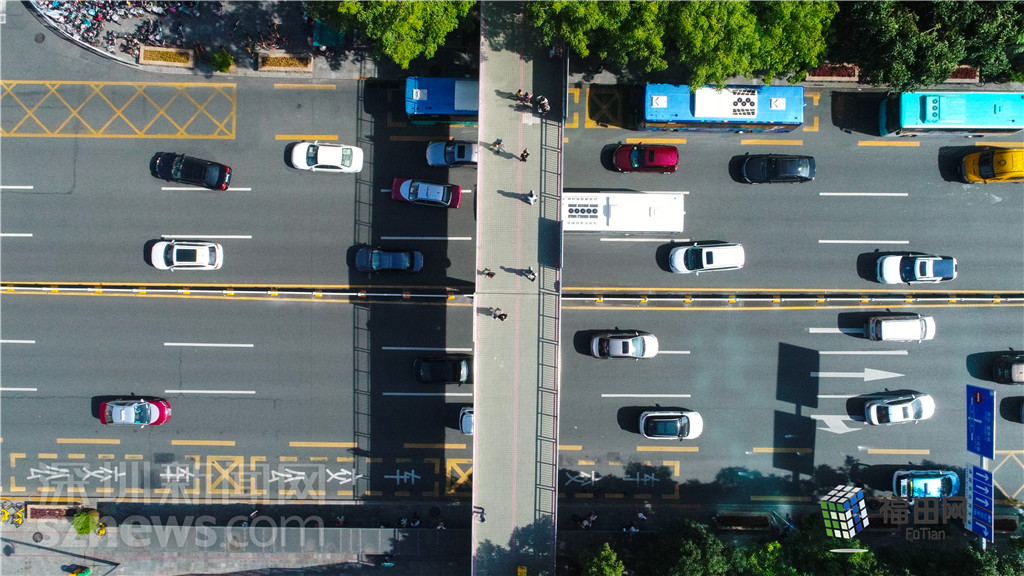 位于華強(qiáng)北片區(qū)西部、深南中路上的中航天橋就是華強(qiáng)北一處重要的交通樞紐。
