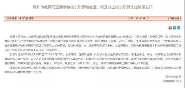 備受關注的深圳校長職級制改革有了新進展。8月20日,深圳市教育局官網對直屬學校校長職級和各區(qū)二級及以上校長職級認定結果進行公示,共有371人。據了解,這是該項改革啟動后首次集中公示。各區(qū)三級及以下正、副校長的職級,由區(qū)評定委員會負責評定,目前也都在各區(qū)教育局官網公示中。根據統(tǒng)計,此次深圳全市評定職級的正、副校長共1297人。