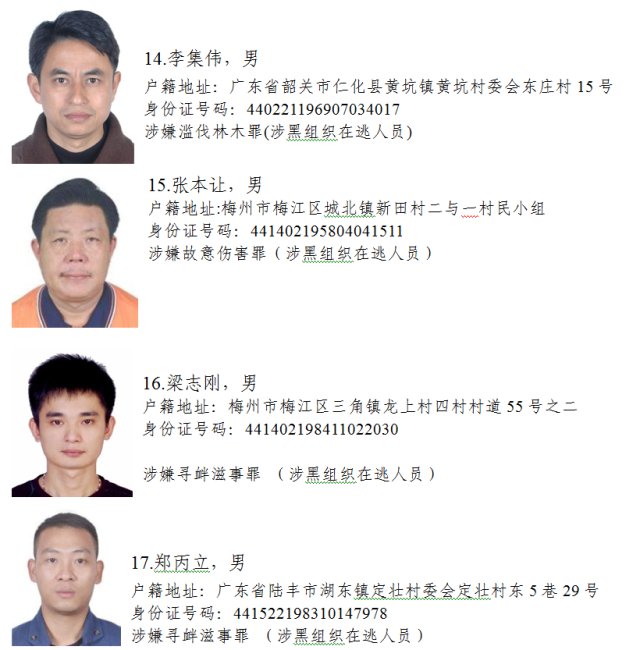 近日,省掃黑除惡辦和省公安廳聯(lián)合公開懸賞50名在逃黑惡勢力犯罪嫌疑人,經(jīng)查證屬實并予以抓獲的,獎勵人民幣1-5萬元不等。見到下面這50名在逃黑惡勢力犯罪嫌疑人,請果斷舉報!