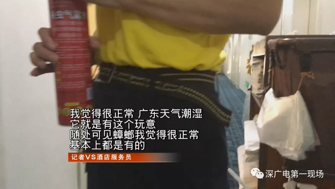 調查進行到這里,記者仍未發(fā)現黃先生遭遇的蟑螂。然而,就在前臺工作人員給記者重新更換的這間雙人標間里,一只大蟑螂突然出現。隨后,記者喊來了酒店的工作人員,對方在很短的時間里對這只蟑螂進行了“毀尸滅跡”,隨后拿出了一罐滅蟑劑,對出現蟑螂的洗手間進行了消殺。
