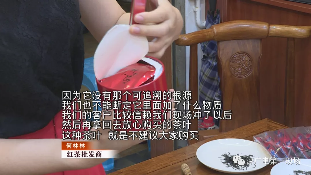 今天,記者也來到位于景田片區(qū)的中國茶宮茶葉批發(fā)市場,一家長期經(jīng)營紅茶的店家介紹,他們店就賣有正山小種和白茶,記者也拿出了劉女士在停車場購買的茶,和店家銷售的正山小種做了對比。店家介紹,停車場售賣的正山小種茶,一小包為標準的5克包裝,分量倒沒有問題,但茶葉外觀和口感上就有說頭了。
