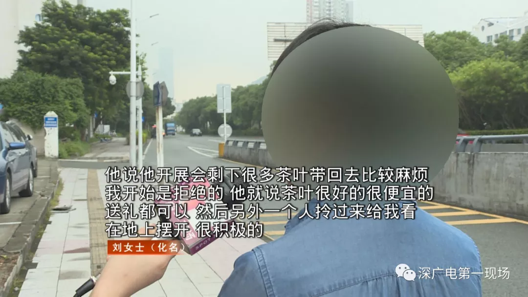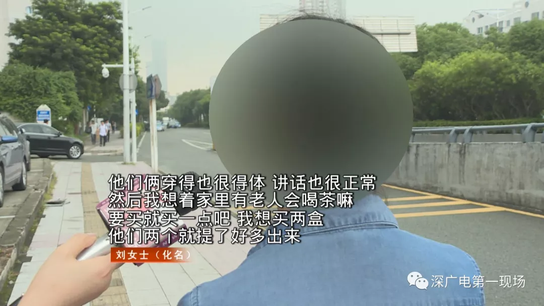 今天,家住福田區(qū)的劉女士給我們反映,說她在其他地方也遇到了類似的“停車場賣茶葉男”,還一個不小心上了套。