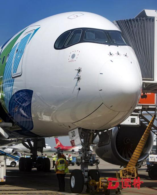 當(dāng)天上午9時(shí)左右,這架萌萌噠A350-900型飛機(jī)由成都飛抵深圳。