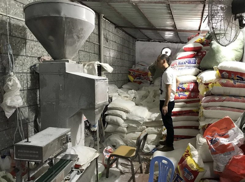 執(zhí)法人員來到位于龍東社區(qū)同昌路的一個(gè)工業(yè)區(qū)進(jìn)行突擊檢查。剛進(jìn)入該工業(yè)區(qū),執(zhí)法人員就發(fā)現(xiàn)有幾間鐵皮房大門緊鎖,通過門縫還能看到大量各品牌的洗衣粉、消毒液,以及各式設(shè)備數(shù)臺(tái)。經(jīng)檢查,現(xiàn)場共有這類鐵皮房3個(gè),分散在工業(yè)園區(qū)3個(gè)不起眼的角落,占地面積超過200平方米。鐵皮房內(nèi)環(huán)境惡劣、電線亂搭,地上堆滿各種標(biāo)識(shí)的加工原料以及各種日化品牌的包裝袋,數(shù)量巨大。