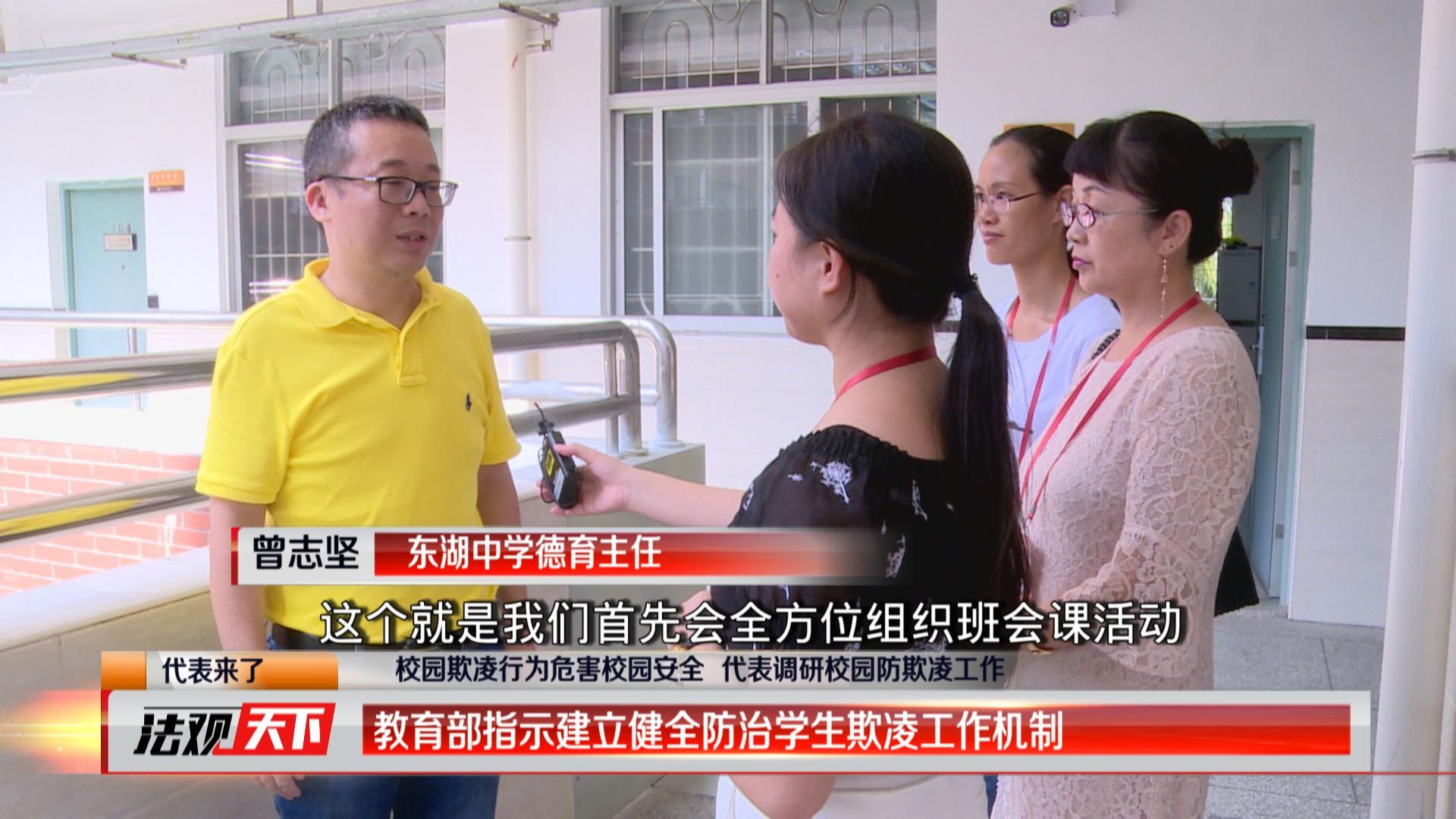 根據(jù)教育部的指示,各教育部門要協(xié)調(diào)組織相關(guān)部門建立健全防治學(xué)生欺凌工作機(jī)制,推動(dòng)綜治、法院、檢察院、公安、民政、司法、人力資源社會(huì)保障等部門及共青團(tuán)、婦聯(lián)、殘聯(lián)等組織落實(shí)職責(zé)分工,加強(qiáng)協(xié)作,共同治理。東湖中學(xué)朱海珊校長(zhǎng)表示,通過(guò)開(kāi)設(shè)校園欺凌舉報(bào)信箱、展開(kāi)主題班會(huì)課、宣傳欄定期宣傳等方式,目前校園防欺凌工作取得不錯(cuò)的效果,至今校園內(nèi)還未收到欺凌的舉報(bào)。