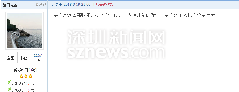 深圳新聞網(wǎng)9月21日訊(記者 施冰冰)“北站停車三天收費(fèi)412元,這不是暴利嘛?!”近日,深圳一網(wǎng)友發(fā)帖吐槽深圳北站的收費(fèi)標(biāo)準(zhǔn),他認(rèn)為深圳市中心的商業(yè)寫字樓一天封頂也不過60元,高鐵站社會(huì)停車場(chǎng)作為老百姓的公共交通基礎(chǔ)設(shè)施,憑什么比市中心的商業(yè)寫字樓還貴2倍多?(帖文:《 北站社會(huì)停車場(chǎng)作為老白姓的公共交通基礎(chǔ)設(shè)施,憑什么比市中心的商業(yè)寫字樓還貴2倍多》)