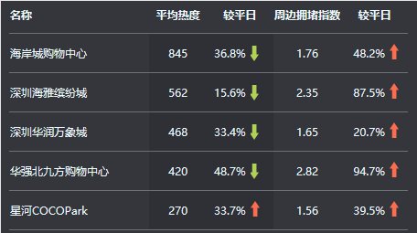 22日12時至今日12時,全市各大型商圈周邊道路交通壓力較平日有所上升,擁堵高峰出現(xiàn)在22日16時至18時,熱門大型商圈周邊道路較為擁堵的有:華強北九方購物中心、深圳海雅繽紛城和海岸城購物中心。