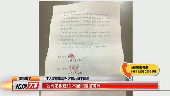 朱先生本以為雇傭雙方簽署了賠償協議就能如期得到賠償金,不料蜂巢裝飾有限公司的老板陽鋒卻違約不履行。無奈之下,朱先生只能再次找到我們,期望在記者和《法觀天下》法援律師的溝通下,蜂巢裝飾有限公司的老板陽鋒能把賠償金如約支付給他。隨后,記者與《法觀天下》嘉賓律師趙乙橋來到龍華區(qū)觀瀾街道金通盛大廈14樓的蜂巢裝飾有限公司,在這里我們見到了老板陽鋒。他表示,因為公司財務的種種原因,第一筆賠償款的支付有所延遲。但是在中秋節(jié)之前,一定會把款項支付給朱先生。