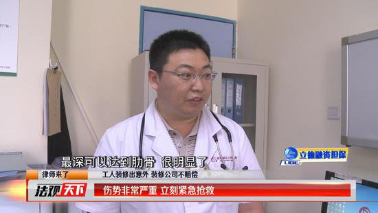 龍華區(qū)人民醫(yī)院表示,朱先生剛被送來的時候情況十分危急,胸前有一個很大的傷口,整個肌肉都裂開了,大概有20至30公分的長度。而且血流不止,隨時會危及生命。他立刻讓周圍的工作人員開通綠色搶救通道,第一時間將朱先生送往手術室進行搶救。經過搶救,朱先生已經脫離了生命危險,傷口也已經愈合,并在恢復當中。但是縫合后的傷口看上去仍然觸目驚心。如今三個多月過去了,朱先生的身體仍然在恢復當中,是否會留有后遺癥仍是個未知數?!斗ㄓ^天下》嘉賓律師雷英表示,只要朱先生是在店鋪內施工時受傷,那么店主和包工頭都應該承擔相應的賠償責任。