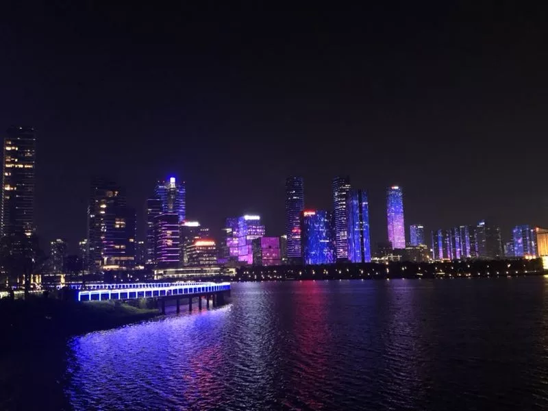 后海大橋的最佳觀賞點(diǎn)并不在人才公園內(nèi),且因?yàn)闃蛄罕旧淼墓δ?市民除了可以步行看秀之外,開車經(jīng)過也能看到絕佳的光影畫面。但是由于燈光秀的部分表演時(shí)段有可能會(huì)出現(xiàn)晚高峰擁堵,這時(shí)候開車慢行看秀并不合時(shí)宜,此外,人車混合通行的橋梁,一旦出現(xiàn)大量人群,容易發(fā)生意外,因此,設(shè)計(jì)者杜健翔也表示,不鼓勵(lì)市民前往后海大橋看燈光秀。
