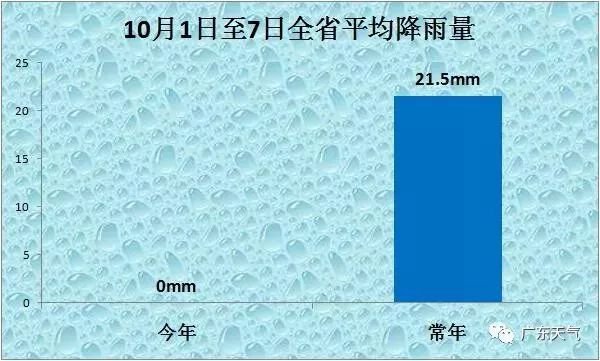 10月1日到7日,全省平均雨量:今年0mm,常年21.5mm,1951年以來最少。