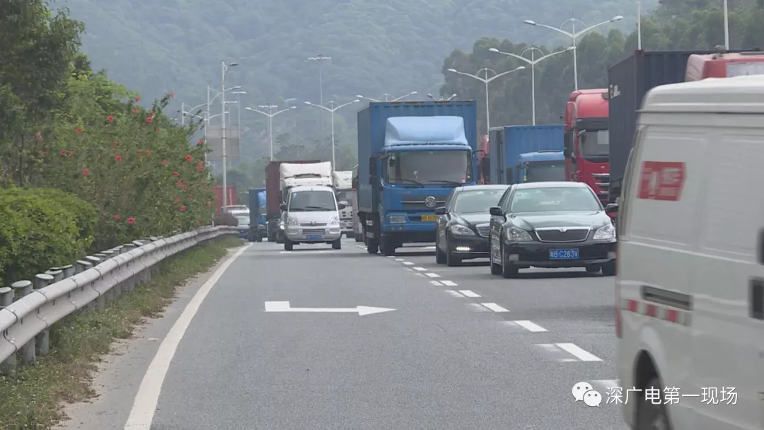 從梅觀路進(jìn)梅林關(guān)往西方向,轉(zhuǎn)南坪快速路的輔道,是一條對(duì)貨車(chē)開(kāi)放的路段。本來(lái)出口有兩條車(chē)道,而最近這兩車(chē)道變成了單車(chē)道,導(dǎo)致路況十分擁堵。