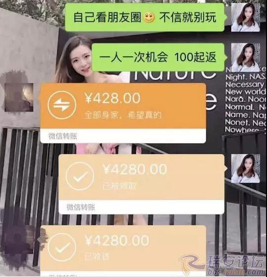 " 美女 " 們無一例外都有一個 " 富二代 " 男友,分個手動不動就甩來 30 萬、50 萬。而美女本身就是高富美,誰稀罕他的臭錢,只要轉賬并備注 " 馬少輝是人渣 " 就能收到十倍返還。當然也可能是 " 王少輝 "、" 孫少輝 "…… 隨便一個名字而已。
