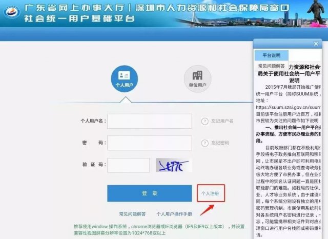 3、若無,點擊"新用戶注冊",進(jìn)入到深圳市人力資源和社會保障局社會統(tǒng)一用戶基礎(chǔ)平臺(https://suum.szsi.gov.cn/suum)。
