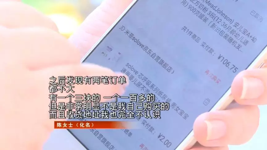 陳女士表示,昨天上午看到已派送的兩個(gè)訂單,有奶粉和尿不濕,這都不是自己購(gòu)買(mǎi)的。