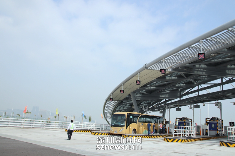 又一輛穿梭大巴抵達(dá)港珠澳大橋珠??诎洞髽?/p>