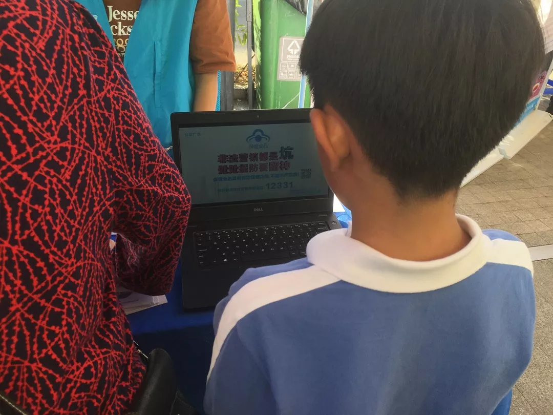 現(xiàn)場播放保健食品欺詐和虛假宣傳視頻,引來市民圍觀學(xué)習(xí),幫助廣大消費者理性選購保健食品,防范欺詐和虛假宣傳等違法違規(guī)行為誤導(dǎo)。