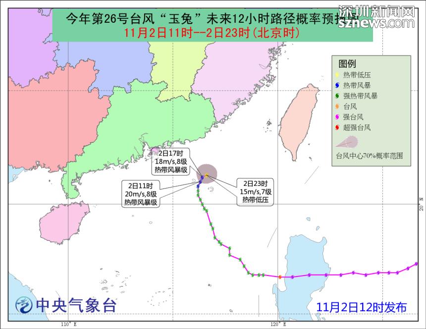 中央氣象臺(tái)于11月2日12時(shí)發(fā)布臺(tái)風(fēng)“玉兔”未來(lái)120小時(shí)路徑概率預(yù)報(bào)圖