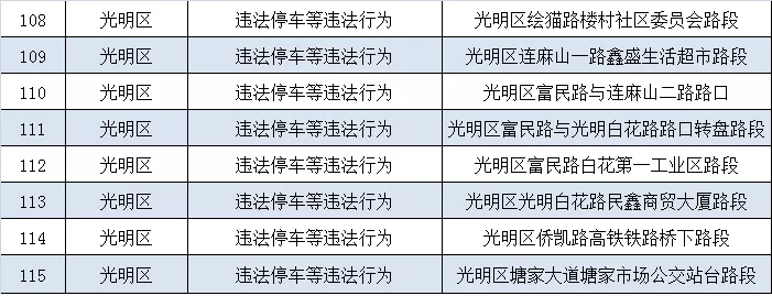 深圳新聞網(wǎng)11月5日訊(記者 何暢)據(jù)“深圳交警權(quán)威發(fā)布”微信公眾號消息,近期深圳交警公布啟用115套交通技術(shù)監(jiān)控設(shè)備,重點(diǎn)整治違法停車、沖紅燈、超速、逆行、不按車道方向行駛、占用公交車道等多種違法行為。其中福田區(qū)56套,羅湖區(qū)20套,寶安區(qū)4套,光明區(qū)35套。