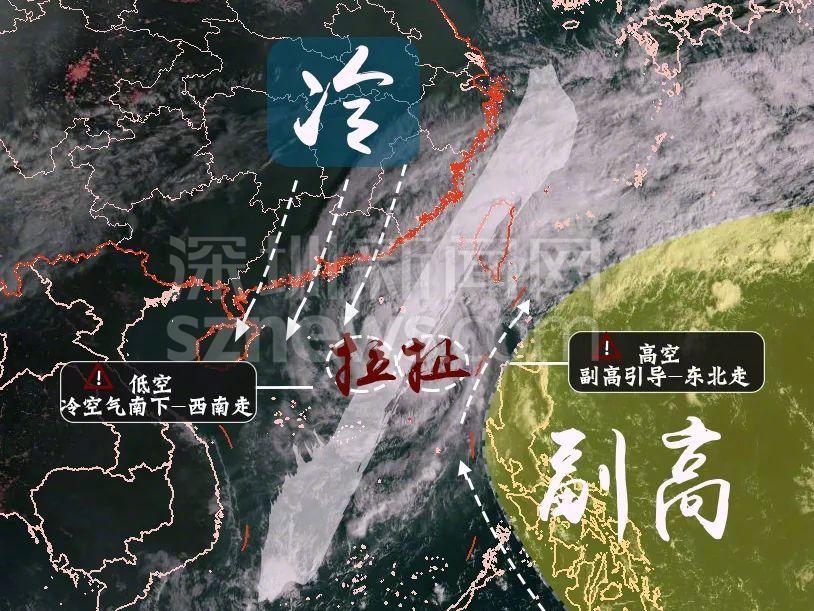 深圳市氣象局發(fā)布的冷空氣和海溫破壞臺(tái)風(fēng)結(jié)構(gòu)示意圖