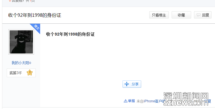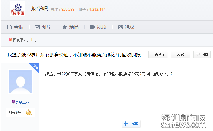 記者在網友的提示下,點擊進入百度貼吧龍華吧(以下簡稱龍華吧)。截至記者發(fā)稿時,根據貼吧的公開信息顯示,該貼吧獲得329273名網友的關注,共發(fā)布過9282277篇帖文。記者通過首頁初步瀏覽發(fā)現(xiàn),龍華吧大部分帖文都涉及龍華、坂田片區(qū)網友的生活工作經歷,并無違法違規(guī)的相關內容。但是通過吧內搜索“修車”“身份證”“微信”等關鍵詞時,搜出的帖文信息卻令人瞠目結舌!