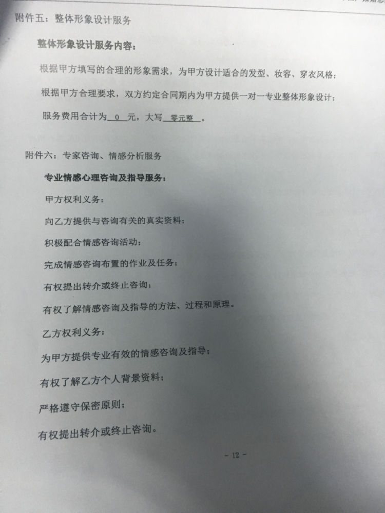 根據(jù)合同,目前服務(wù)時(shí)間已經(jīng)終止,但還有心理咨詢(xún)服務(wù)及個(gè)人宣傳片兩項(xiàng)增值服務(wù)未履行。朱女士對(duì)此解釋?zhuān)@是屬于不收費(fèi)的增值服務(wù),需要客戶(hù)自己提出才會(huì)進(jìn)行。“沒(méi)有人跟我說(shuō)過(guò)這個(gè)需要自己提出要求?!眲⑿〗銓?duì)該說(shuō)法并不買(mǎi)賬。