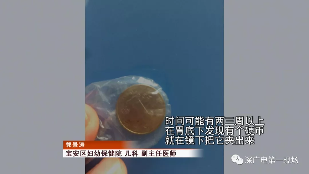 經過兩個小時的時間,兒科醫(yī)生郭景濤為患兒取出了藏在胃底的一角錢硬幣。目前,患兒已經痊愈出院。
