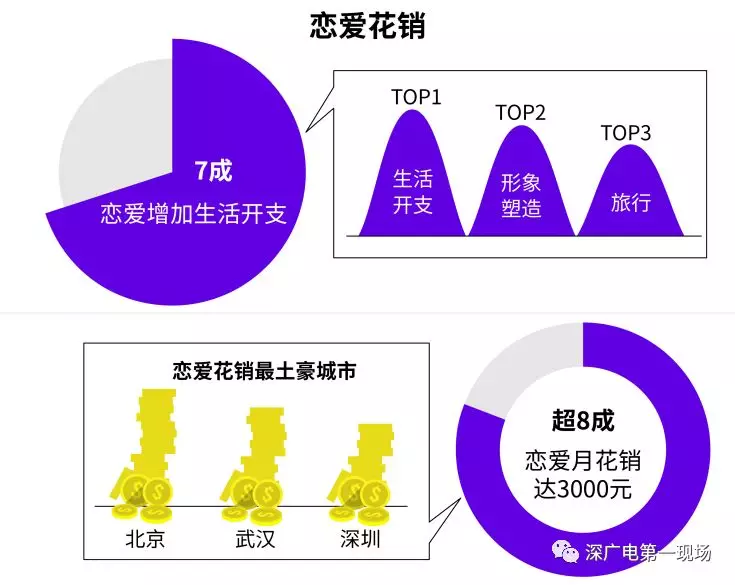 調(diào)查顯示,71.65%的單身男女表示戀愛將會(huì)增加生活開支,開支增加的最主要方面為生活開支、形象塑造和旅行。
