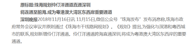 珠海規(guī)劃新增伶仃洋通道及其西延線(xiàn),跨海直通深圳
