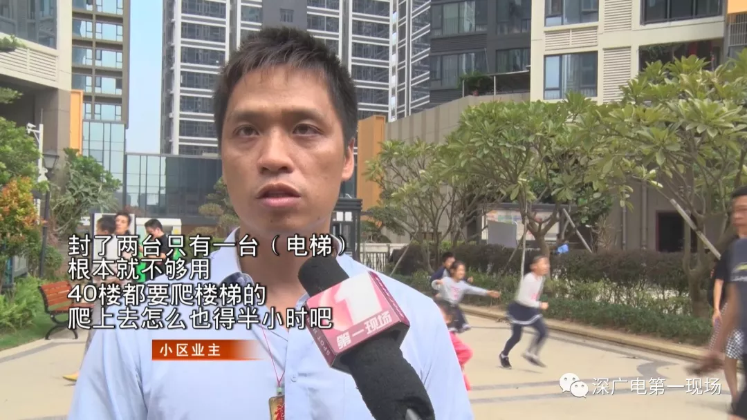 光明首個(gè)超高層住宅入伙不到3年,3臺(tái)電梯壞2臺(tái),有業(yè)主天天爬40樓回家