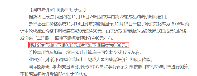 16日晚24時(shí),成品油迎來(lái)11月第二次調(diào)價(jià)