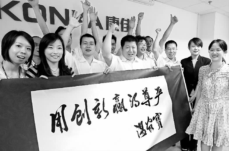 溫家寶總理為康佳集團(tuán)的親筆題詞激勵(lì)著康佳員工繼續(xù)發(fā)揚(yáng)創(chuàng)新精神!許光明 攝