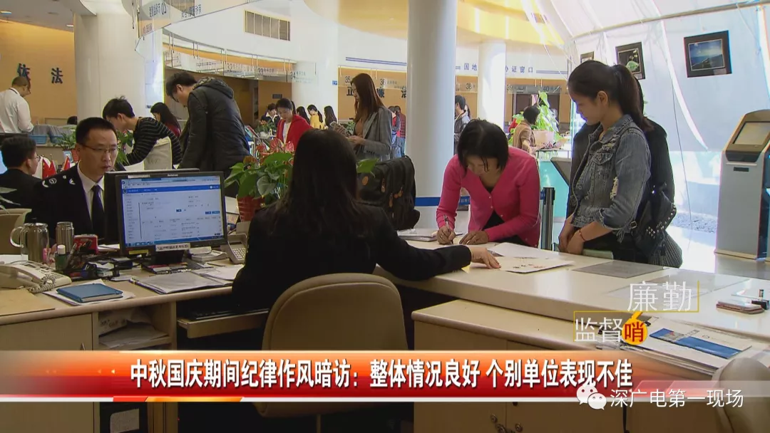 中秋、國(guó)慶雙節(jié)期間,市紀(jì)委監(jiān)委和深圳廣電集團(tuán)聯(lián)合暗訪組共出動(dòng)232人次,分別前往大鵬新區(qū)稅務(wù)局、大鵬新區(qū)衛(wèi)生監(jiān)督所、大鵬新區(qū)公共事業(yè)局、坪山區(qū)教育局,坪山區(qū)建筑工務(wù)局、光明區(qū)社保分局、光明區(qū)衛(wèi)生監(jiān)督所等47個(gè)市、區(qū)單位及下屬部門獨(dú)立辦公場(chǎng)所,進(jìn)行暗訪調(diào)查。多數(shù)單位人員齊整,工作秩序井然,前來(lái)咨詢辦事的市民能夠得到及時(shí)、有效的接待服務(wù),沒(méi)有發(fā)現(xiàn)違規(guī)收受“紅包”禮金等“四風(fēng)”問(wèn)題。不過(guò),聯(lián)合暗訪組還是發(fā)現(xiàn)了個(gè)別單位存在工作紀(jì)律渙散、提前早退脫崗等問(wèn)題,作風(fēng)存在軟、松、散情況。