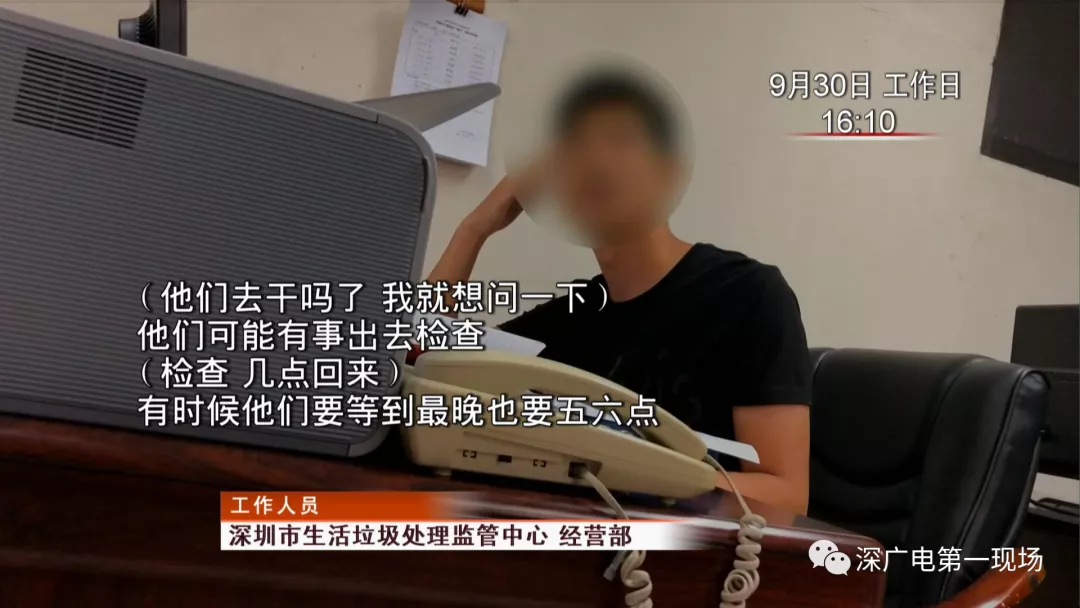 暗訪組了解到,這間辦公室屬于深圳市生活垃圾處理監(jiān)管中心經(jīng)營部,而這間辦公室內(nèi)的兩名工作人員直到規(guī)定的下班時間5點半,也沒有回到辦公室。聯(lián)合暗訪組還發(fā)現(xiàn),216辦公室的隔壁214辦公室也同為經(jīng)營部,里面有四個辦公卡座,但只剩下一名男性工作人員。