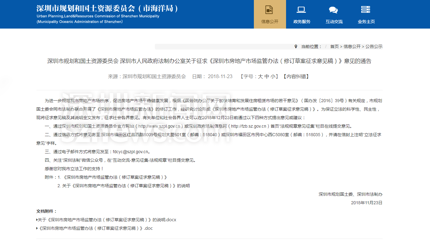 據(jù)了解,深圳市規(guī)土委會(huì)同市法制辦聯(lián)合開展了《深圳市房地產(chǎn)市場監(jiān)管辦法》的修訂工作,形成《深圳市房地產(chǎn)市場監(jiān)管辦法(修訂草案征求意見稿)》(以下簡稱《辦法意見稿》)。記者注意到,此次修訂的大背景是落實(shí)國家“房住不炒”的目標(biāo)要求,加上國務(wù)院取消了房地產(chǎn)經(jīng)紀(jì)人資格管理制度、深圳市取消了房地產(chǎn)行業(yè)年檢制度而實(shí)行年報(bào)制度,原監(jiān)管辦法自2010年以來,已實(shí)施近8年,相關(guān)規(guī)定已不合時(shí)宜,亟需結(jié)合新的形勢和要求進(jìn)行修訂完善。