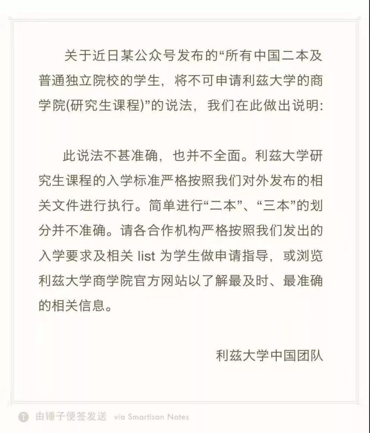 倫敦瑪麗女王大學(xué)駐中國辦事處負(fù)責(zé)人王穎向記者表示,文中提到的關(guān)于倫敦瑪麗女王大學(xué)的入學(xué)要求是錯誤的?!皞惗噩旣惻醮髮W(xué)今年的錄取標(biāo)準(zhǔn)較以往沒有明顯變化,我們歡迎并接受來自中國非985、211大學(xué)的申請者?!?/p>