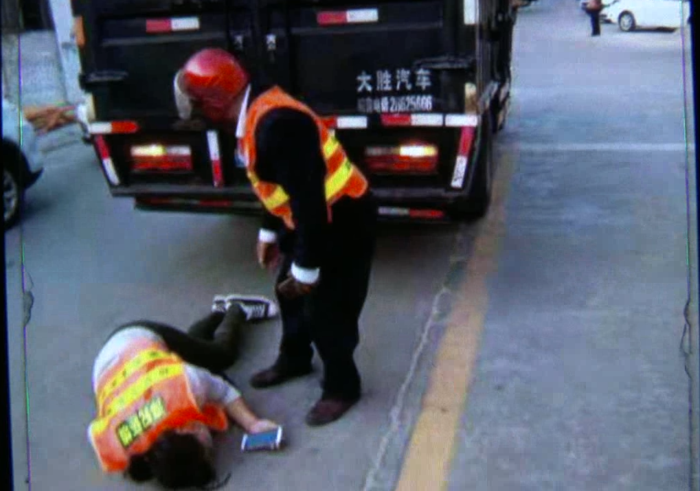 原標題:女環(huán)衛(wèi)工被貨車卷入車底……倒地后她竟還在看手機