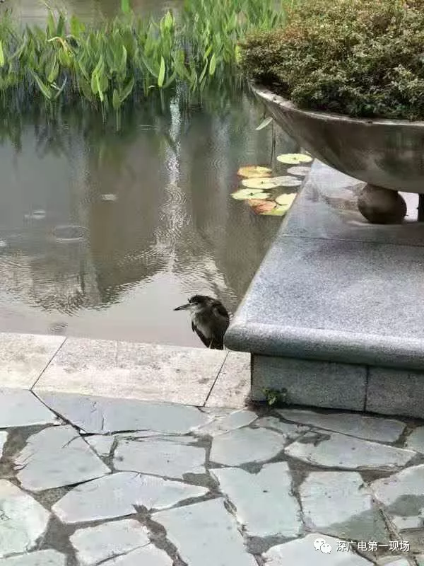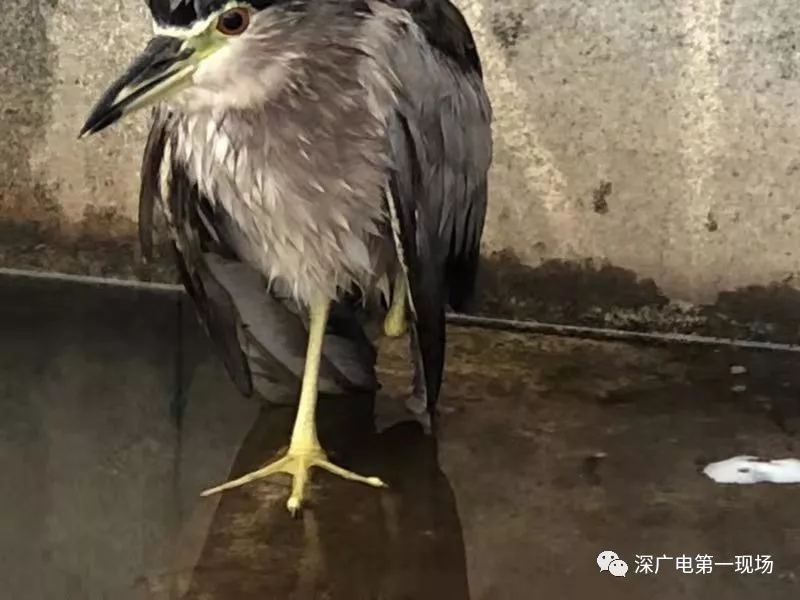 公園的保安發(fā)現(xiàn)后,馬上致電深圳市野生動(dòng)物保護(hù)協(xié)會(huì),工作人員許先生到場(chǎng)后,把這只夜鷺解救上岸。