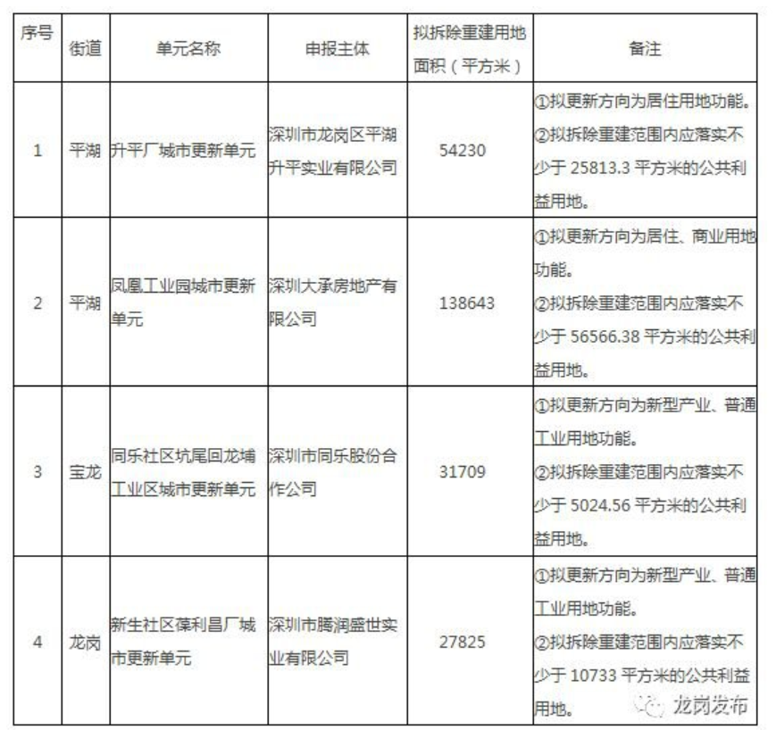 本表所列的城市更新單元須按照城市更新相關(guān)政策完成城市更新單元規(guī)劃編制及項(xiàng)目實(shí)施主體確認(rèn)等工作后方可實(shí)施開發(fā)建設(shè)。