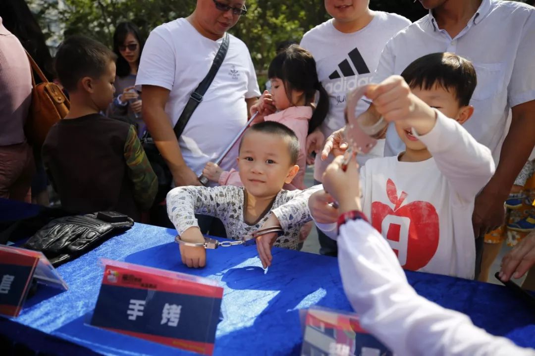 防暴盾牌、槍支警械威武霸氣,隊列棍術(shù)、擒拿格斗輪番上陣。很多人興致勃勃地穿戴警用裝備,頭戴鋼盔、身穿警服,登上反恐敞篷車拍照留念,圓夢警察夢想。