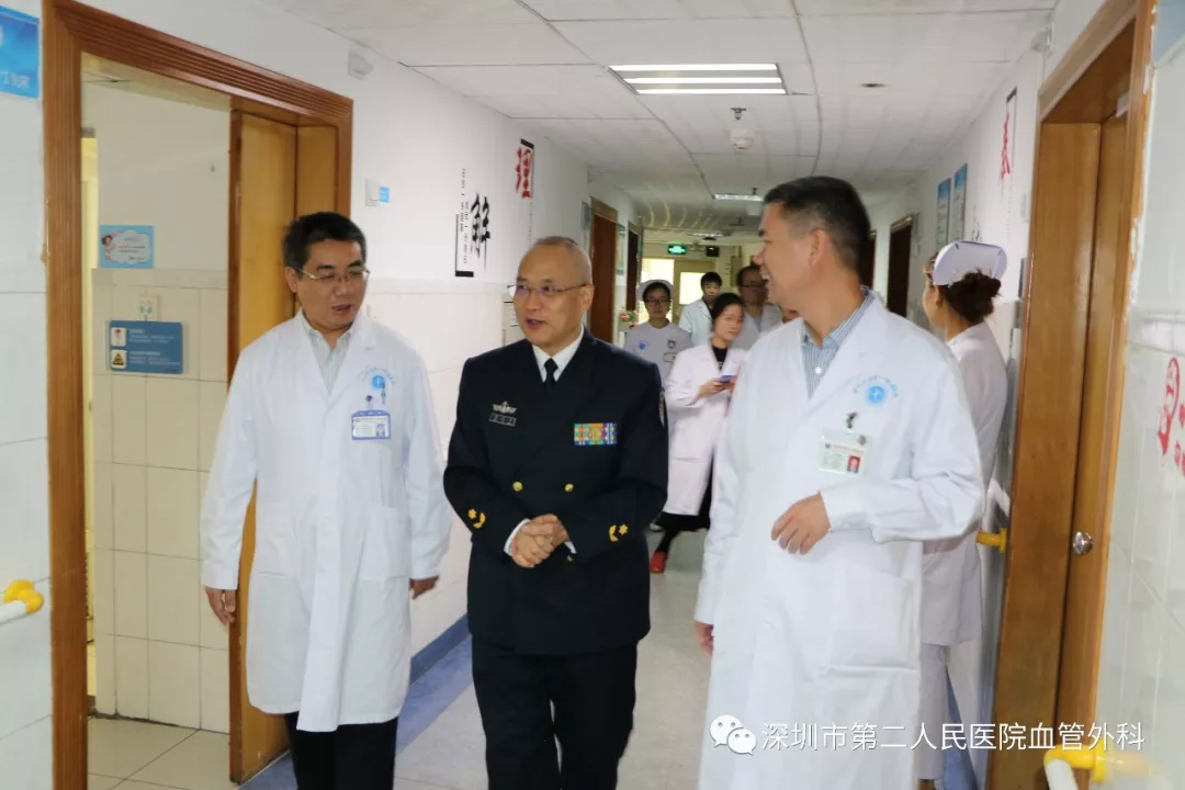 2018年11月30日,中國(guó)人民解放軍海軍軍醫(yī)大學(xué)附屬長(zhǎng)海醫(yī)院血管外科、心臟瓣膜疾病微創(chuàng)診治中心主任,上海市血管系統(tǒng)疾病臨床醫(yī)學(xué)中心主任,全軍血管外科研究所所長(zhǎng),中國(guó)醫(yī)師協(xié)會(huì)腔內(nèi)血管學(xué)分會(huì)(二級(jí))主任委員,國(guó)際知名血管外科專家景在平教授,來(lái)到深圳市第二人民醫(yī)院(深圳大學(xué)第一附屬醫(yī)院)(以下簡(jiǎn)稱“我院”)進(jìn)行座談、臨床查房、會(huì)診以及向全市住院醫(yī)師規(guī)培學(xué)員、教師與基地管理人員進(jìn)行專題學(xué)術(shù)講座。
