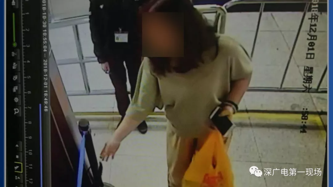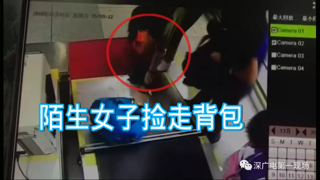監(jiān)控顯示,肖女士身后有一名身穿駝色上衣的女子,在通過安檢之后,把自己的黑色背包拿走之后,并沒有立刻離開,而是站在肖女士藍(lán)色挎包旁,等待了10秒左右的時(shí)間,隨后就拿走了藍(lán)色挎包。