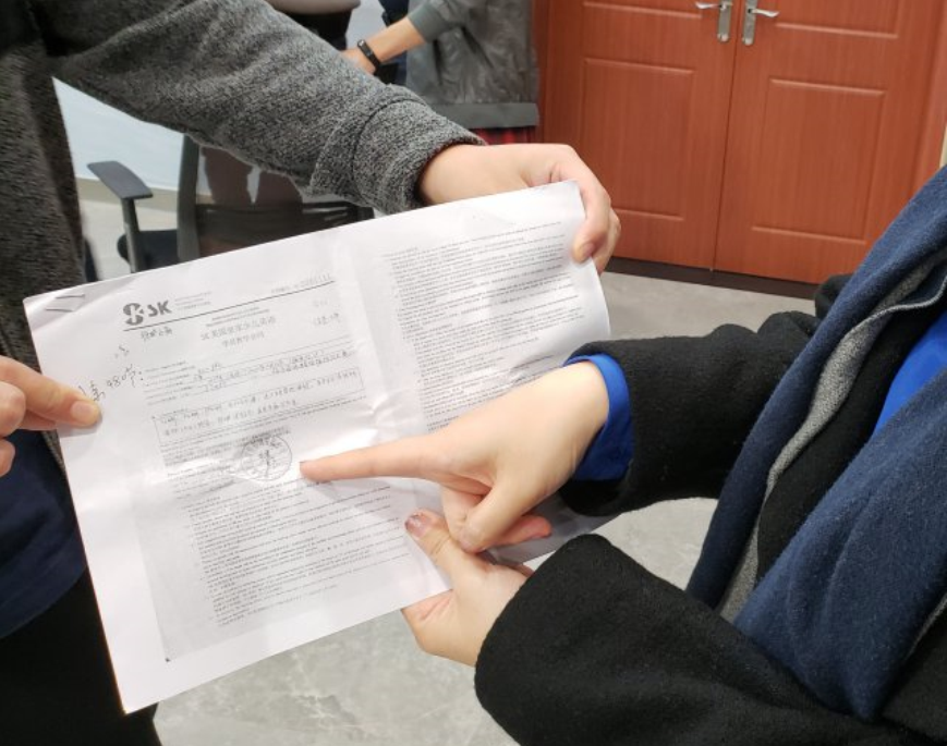 ▲家長向記者展示合同上蓋章公司為"深圳市優(yōu)啟教育咨詢有限公司"。