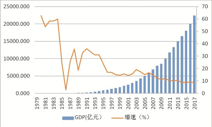 1979-2017年深圳市GDP增長軌跡。