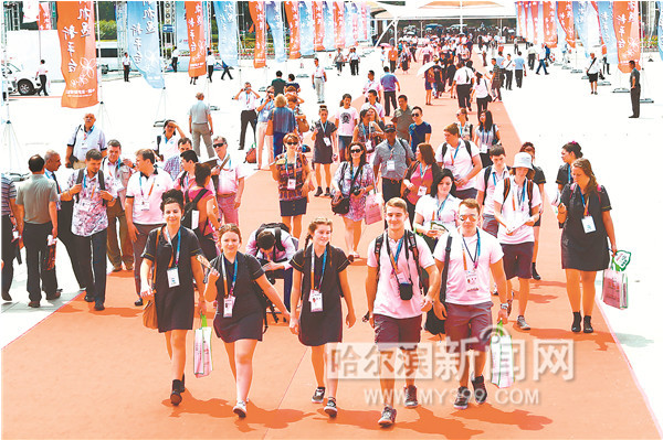首屆中俄博覽會(huì)暨第25屆哈洽會(huì)中外嘉賓步入展館。