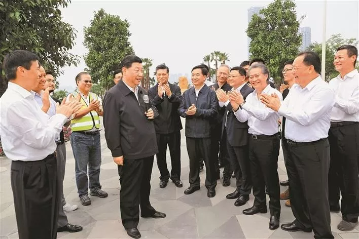 10月24日,習(xí)近平在廣東自由貿(mào)易試驗區(qū)深圳前海蛇口片區(qū)考察。在前海石前,習(xí)近平同前海建設(shè)者和見證者代表同話滄桑巨變。新華社記者鞠鵬攝