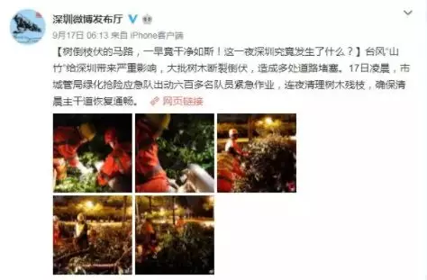 臺(tái)風(fēng)“山竹”肆虐時(shí),“深圳發(fā)布”第一時(shí)間發(fā)布臺(tái)風(fēng)登陸的微信,不到一小時(shí),閱讀量就達(dá)到了10W+,發(fā)布信息的及時(shí)獲得了網(wǎng)友的一致點(diǎn)贊。臺(tái)風(fēng)期間更是24小時(shí)不間斷發(fā)布信息,并設(shè)置??箵襞_(tái)風(fēng)山竹#專題,協(xié)調(diào)全市政務(wù)新媒體矩陣全力開展信息聯(lián)動(dòng)發(fā)布工作。